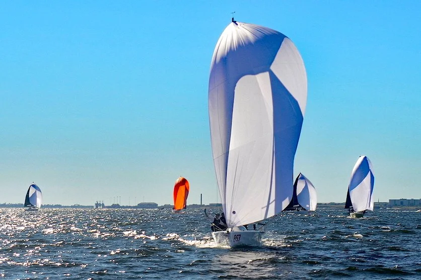 After missing 2020 racing in the Bushwhacker Cup because of Hurricane Sally damage, Day 1 Racing in Pensacola YC's Melges 24 Bushwhacker Cup was nearly perfect on Saturday. The 21-boat fleet sailed four races on four 1.25-mile leg courses in the first race and 1-mile legs thereafter.. Starts were hard fought with one general recall and several individual recalls.